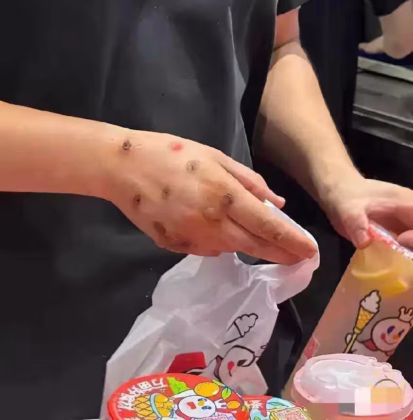 傍晚買奶茶時,驚見店員滿手詭異「黑色圓疤」,我嚇得不敢喝!PO網求助後網友狂喊:快丟掉!