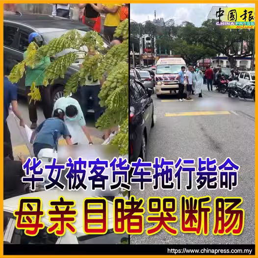 (吉隆坡14日訊)年輕華裔女郎趁假期陪家人出門用餐,不料過馬路時慘遭客貨車撞擊,並被拖行逾10米,當場斃命!