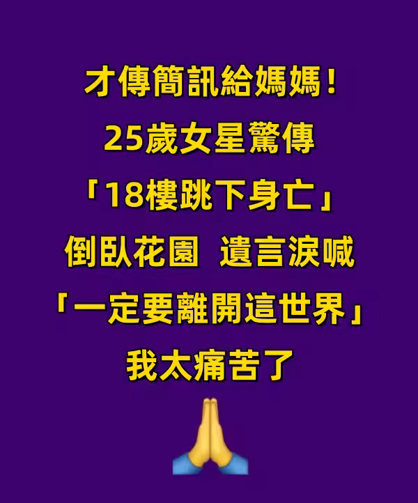 才傳簡訊給媽媽!25歲女星驚傳「18樓跳下身亡」倒臥花園 遺言淚喊「一定要離開這世界」我太痛苦了!
