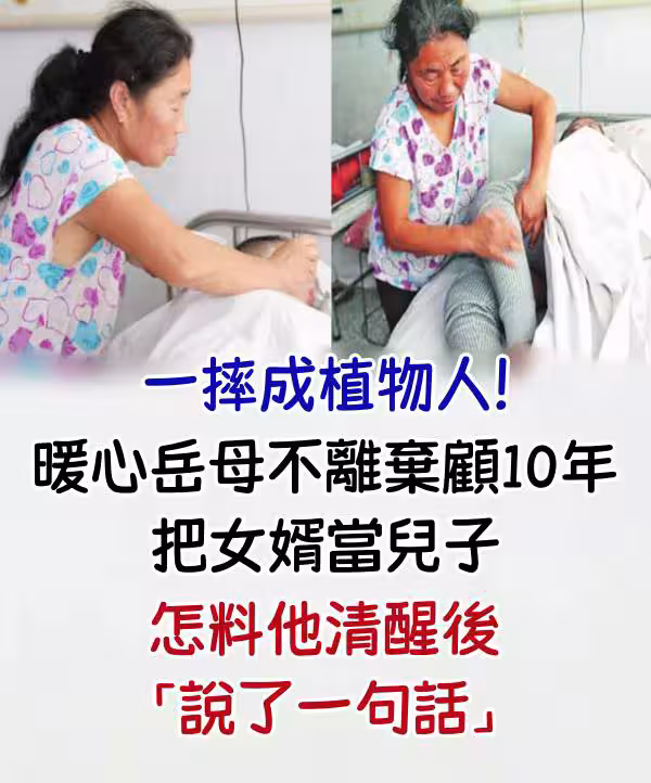 一摔成植物人!暖心的岳母「不離棄顧10年」把女婿當兒子 怎料他清醒後「說了一句話」