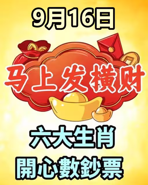 9月16日馬上發橫財,六大生肖開心數鈔票