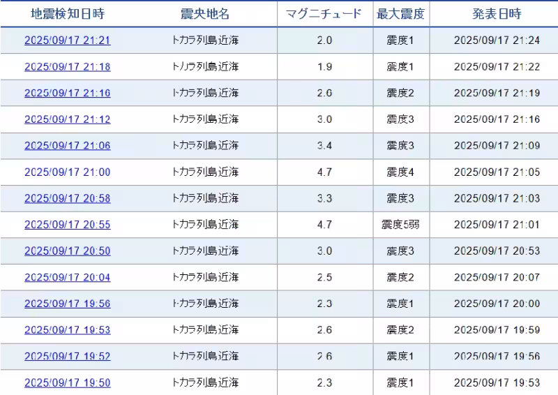 短時間多起地震的現象,讓人想起6、7月時,吐噶喇群島近海一連震破1700起,引髮網友熱議,「吐噶喇群島地震也太多」「鹿兒島的朋友還好嗎」。