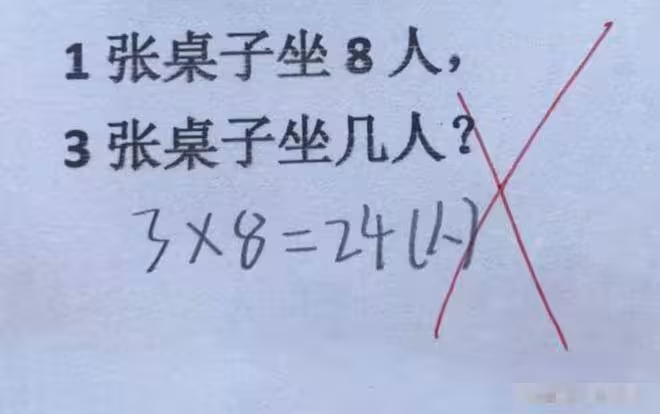 差一題100分「3×8=24」被打叉,女兒回家大哭,家長不服質問老師「1句解釋」 媽媽紅了臉
