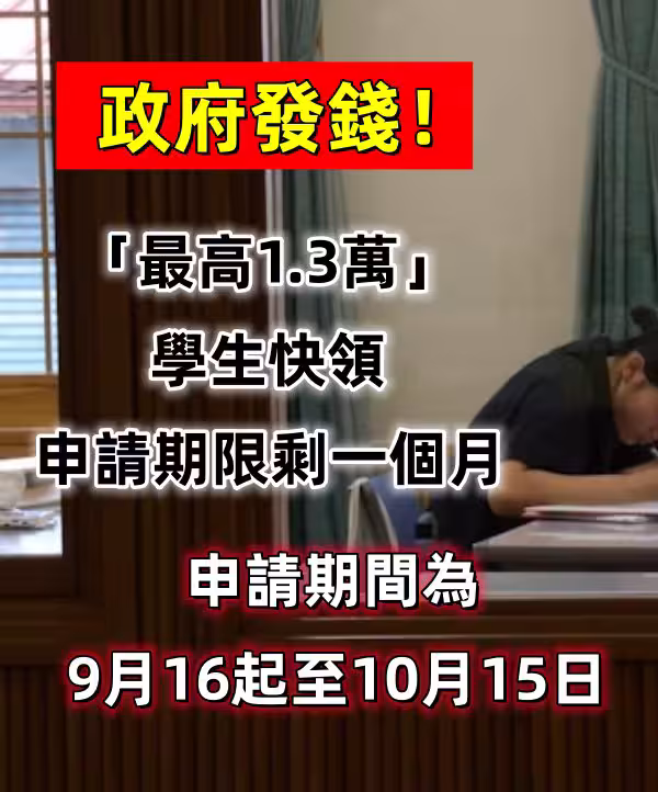 快訊/政府發錢!「最高1.3萬」學生快領 申請期限剩一個月!