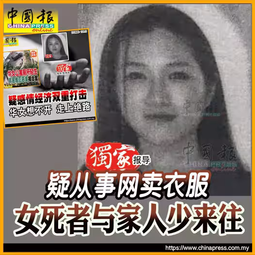 (吉隆坡19日訊)被揭在公寓廁所輕生的華裔女子,疑從事網賣衣服生意,生前曾拖欠租金,並且與家人甚少來往。