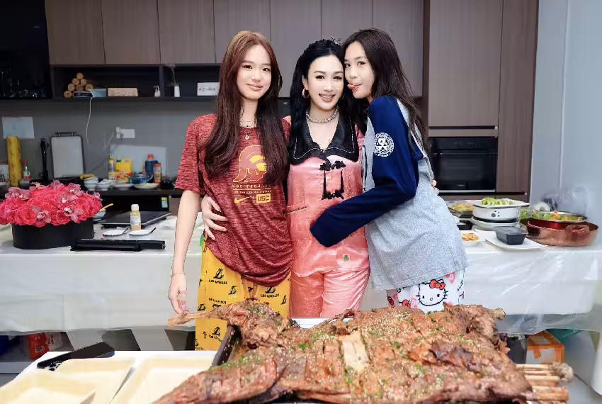 鍾麗緹辦睡衣派對慶祝55歲生日,買了一隻烤全羊,充滿金錢的味道