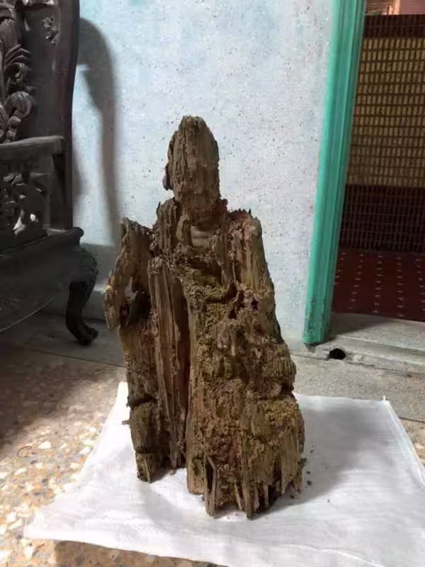 好神,遭白蟻咬10年枯木竟變濟公佛像,眼尖網友發現手上還有驚人細節,根本神跡