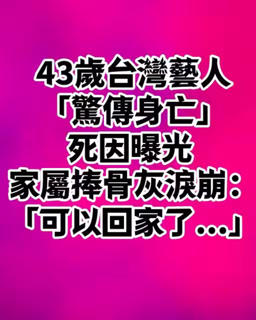 43歲台灣藝人「驚傳身亡」死因曝光 家屬捧骨灰淚崩:「可以回家了...」