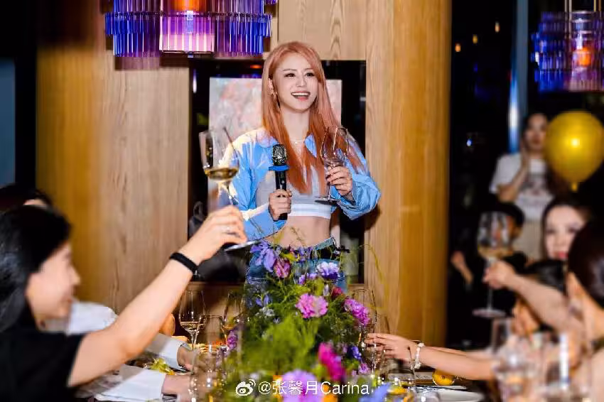 張馨月在派對現場就是被眾星捧月的壽星,大家把她圍在中間,各種擺pose凹造型,真的給足了面子。