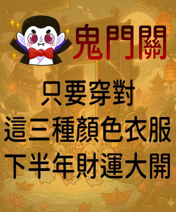 這天除了是好兄弟們準備返回陰間的日子,對人類來說也是一個轉運的好時機。 在這個充滿神秘磁場的日子,穿對衣服顏色,可以幫助你提升運勢,讓你財運、桃花運都大開! 鬼門關穿這些顏色,好運跟著來 鬼門關的這天,由於陰陽磁場交會,能量特彆強,傳統習俗上會選擇一些具有穩定、鎮定效果的顏色,來幫助我們趨吉避凶。
