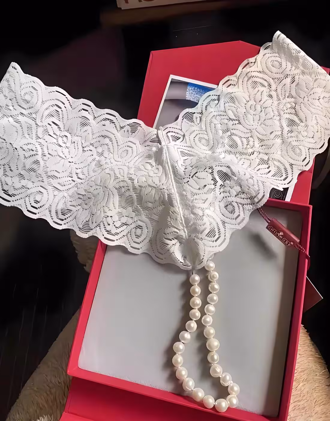 晚上十點,哄睡孩子後,林小姐終於按捺不住好奇心。她用微微發抖的手指輕輕解開緞帶,掀開盒蓋的瞬間,一抹柔和的珠光映入眼帘——那是一條設計獨特的項鍊:細膩的法國蕾絲纏繞著瑩潤的南洋珍珠,在燈光下泛著溫柔的光澤。