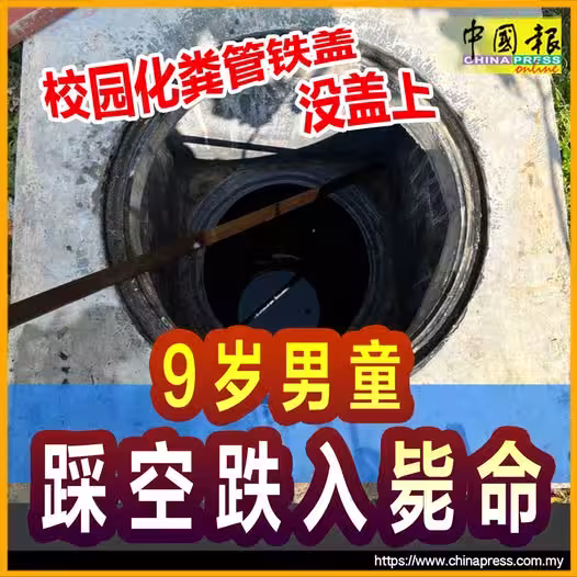 (芙蓉27日訊)9歲男生在學校誤踩蓋不好的纖維材質的涵洞蓋 ,墜入1.8米深的排污管,被救起後雖緊急搶救,唯證實斃命。
