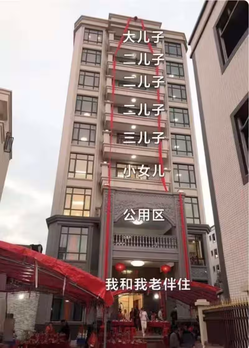 自蓋「八層小別墅」,老兩口住在一層,其餘孩子各住一層,二媳婦背後閒聊:我家虧大了~