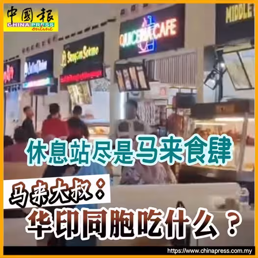 (吉隆坡29日訊)大道休息站儘是馬來食肆,馬來大叔暖心呼籲管理層增設華人和印度人食肆。