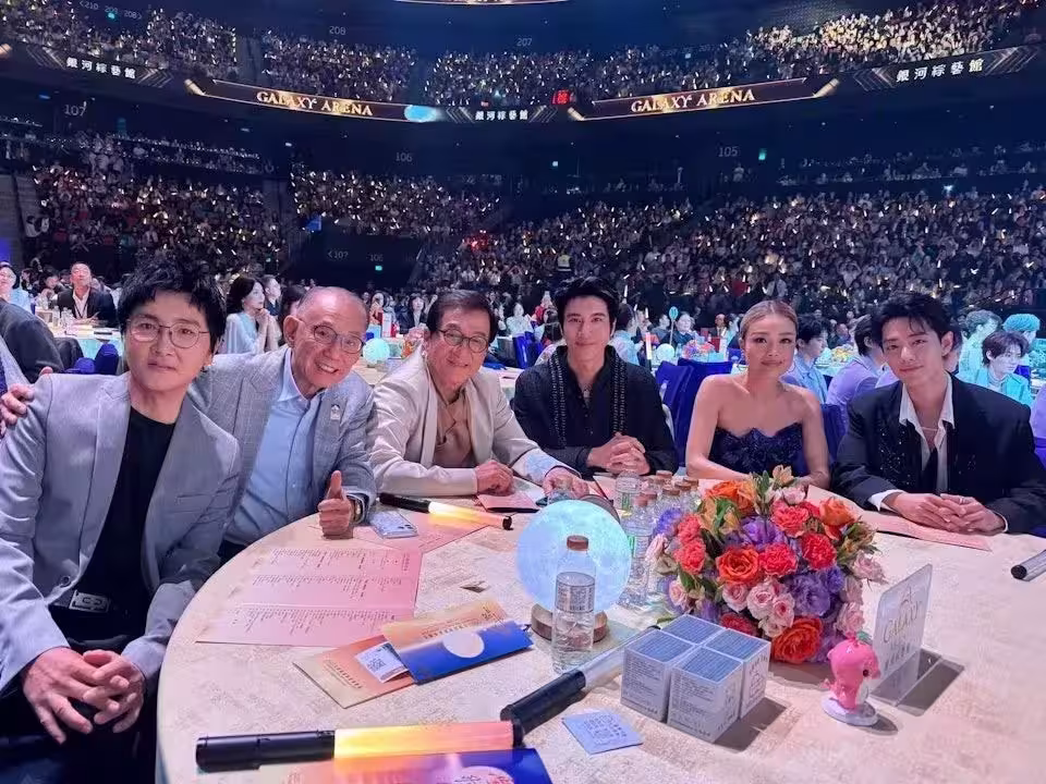 2025「灣區升明月」大灣區電影音樂晚會上周日在澳門舉行,成龍、天后容祖兒、王力宏等重量級巨星、英皇集團老闆楊受成都受邀出席,成龍更與容祖兒在台上合唱經典金曲《明明白白我的心》。