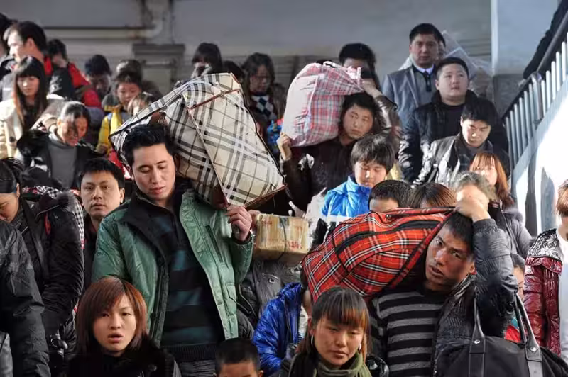 帽子的主人是兩個半大孩子,頂多十五六歲,和我兒子同年。他們並排站著,腳邊各放一隻鼓囊囊的蛇皮袋,露出半截安全帽檐。臉上曬得黝黑,顴骨處泛著不均勻的赤紅,像被烈日反覆灼烤過的鐵皮。雙手垂在身側,手指關節粗大,指甲縫裡嵌著洗不掉的石灰粉;手掌卻侷促地張著,不知該抓住吊環還是插進口袋,最終只能互相攥緊,像抓住彼此最後的依靠。