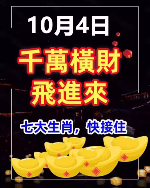 10月4日千萬橫財飛進來,七大生肖快接住