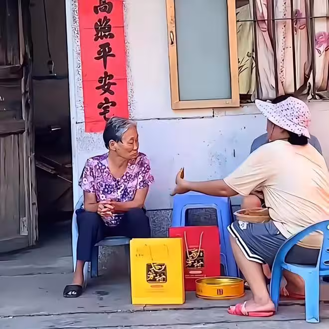 全紅嬋媽媽回爺奶家送禮,翡翠項鍊手鐲都摘下來了,騎電車很樸素