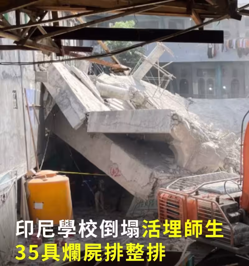 印尼東爪哇(Java)地區的阿爾・霍齊尼(Al Khoziny)伊斯蘭寄宿學校,因校舍違規施工導致建築倒塌,死亡人數不斷上升。