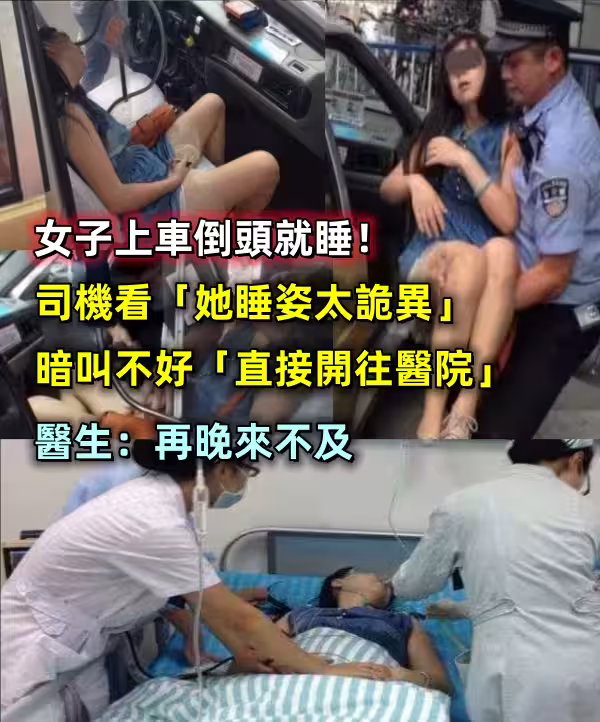 女子上車倒頭就睡!司機看「她睡姿太詭異」暗叫不好「直接開往醫院」醫生:再晚就來不及了