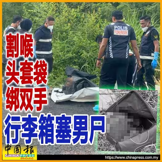 一名男子慘遭割喉、頭套塑料袋、雙手被綁,塞入行李箱棄屍!
