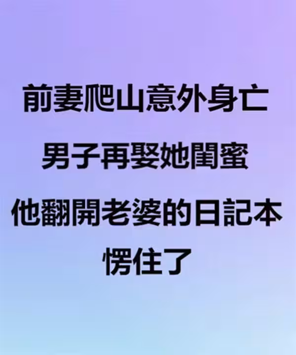 前妻爬山意外身亡,男子再娶她閨蜜,他翻開老婆的日記本愣住了...
