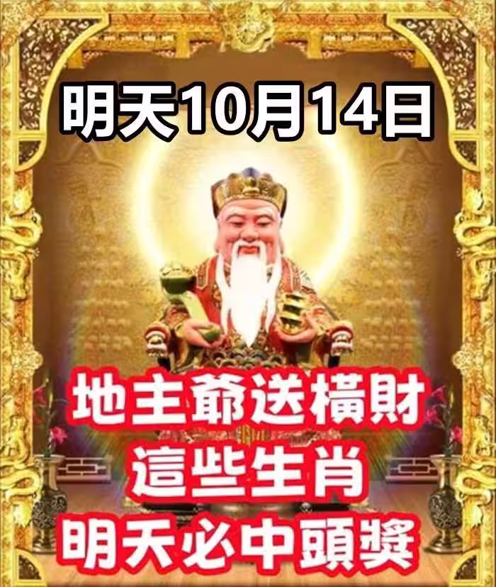 明天10月14日:地主爺送橫財,這些生肖明天必中頭獎。