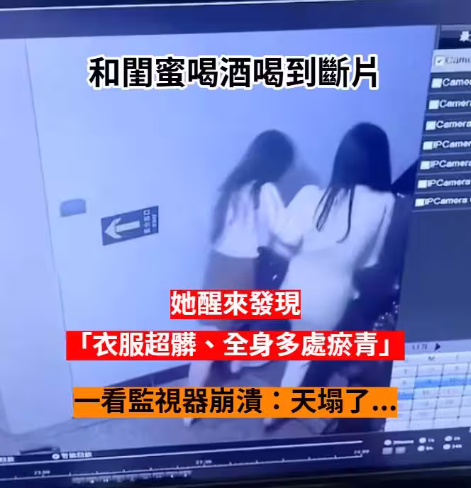 和閨蜜喝到斷片!隔天醒來「她全身都是瘀青」衣服也好髒 一看監視器崩潰:「天塌了...」