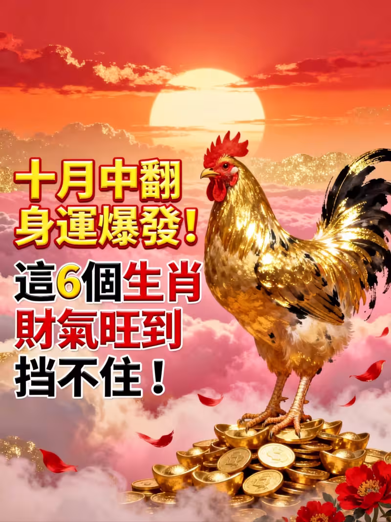 十月中旬的氣場開始轉旺, 福星與財星齊動,讓整體運勢進入爆發期! 無論是事業、財運還是人緣, 這段時間都會迎來「谷底反彈、全面翻紅」的能量。 財神巡門、貴人點名, 這六個生肖的財氣一路飆升, 好運連環、紅包滿滿、喜事接連到門口!