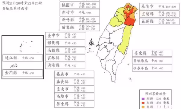 近日受到風神颱風外圍環流與東北季風雙重影響,北部與東部多地出現豪大雨。中央氣象署表示,北台灣今(21日)至明(22日)降雨明顯,部分山區累積雨量已達停班停課標準,民眾關註明日是否能停班停課。