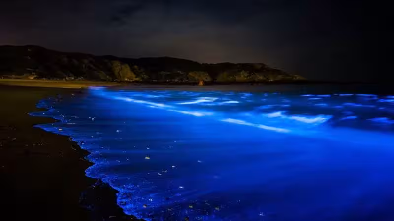 知名景點「生命之樹」周邊的水域呈現迷人的藍色光波,形成難得一見的自然現象。