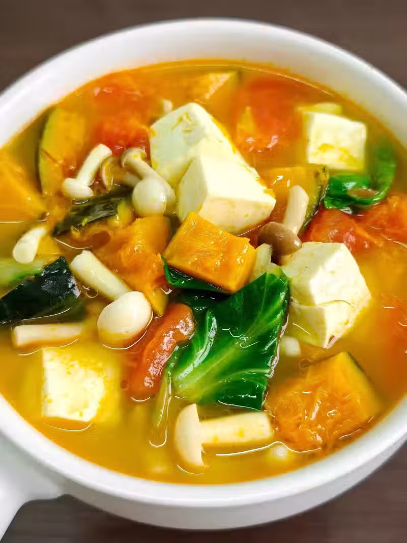 南瓜粉粉糯糯的湯汁濃郁鮮甜、豆腐嫩滑多汁好好吃
