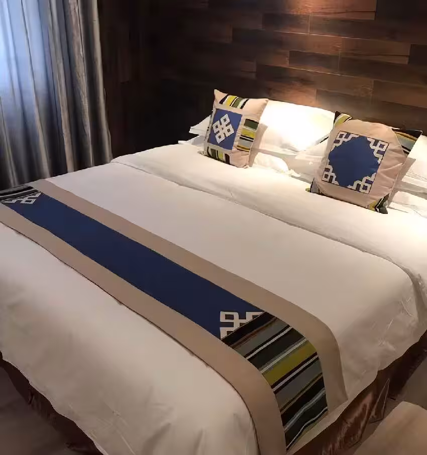 床旗還有一個最最重要的作用,那就是宣傳,有很多的酒店都會在床旗上印上自家酒店的logo,這樣具有識別性,還有宣傳性。
