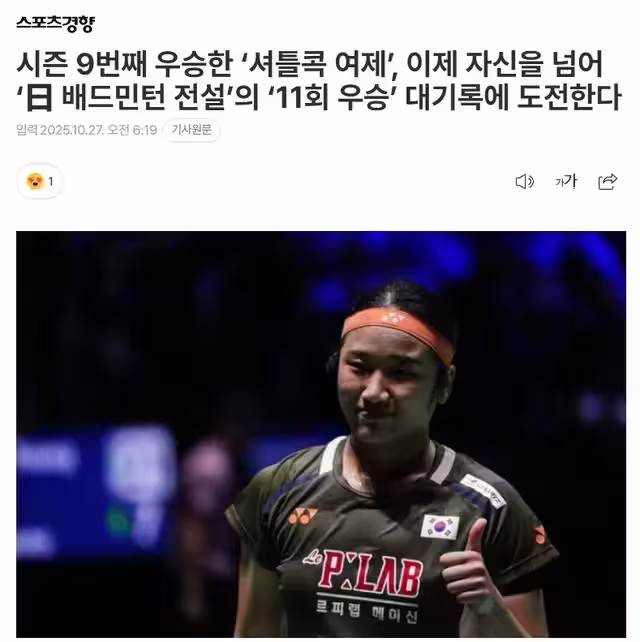 刷歷史首人紀錄!韓媒:安洗瑩連勝三位國羽王牌 挑戰桃田11冠神跡