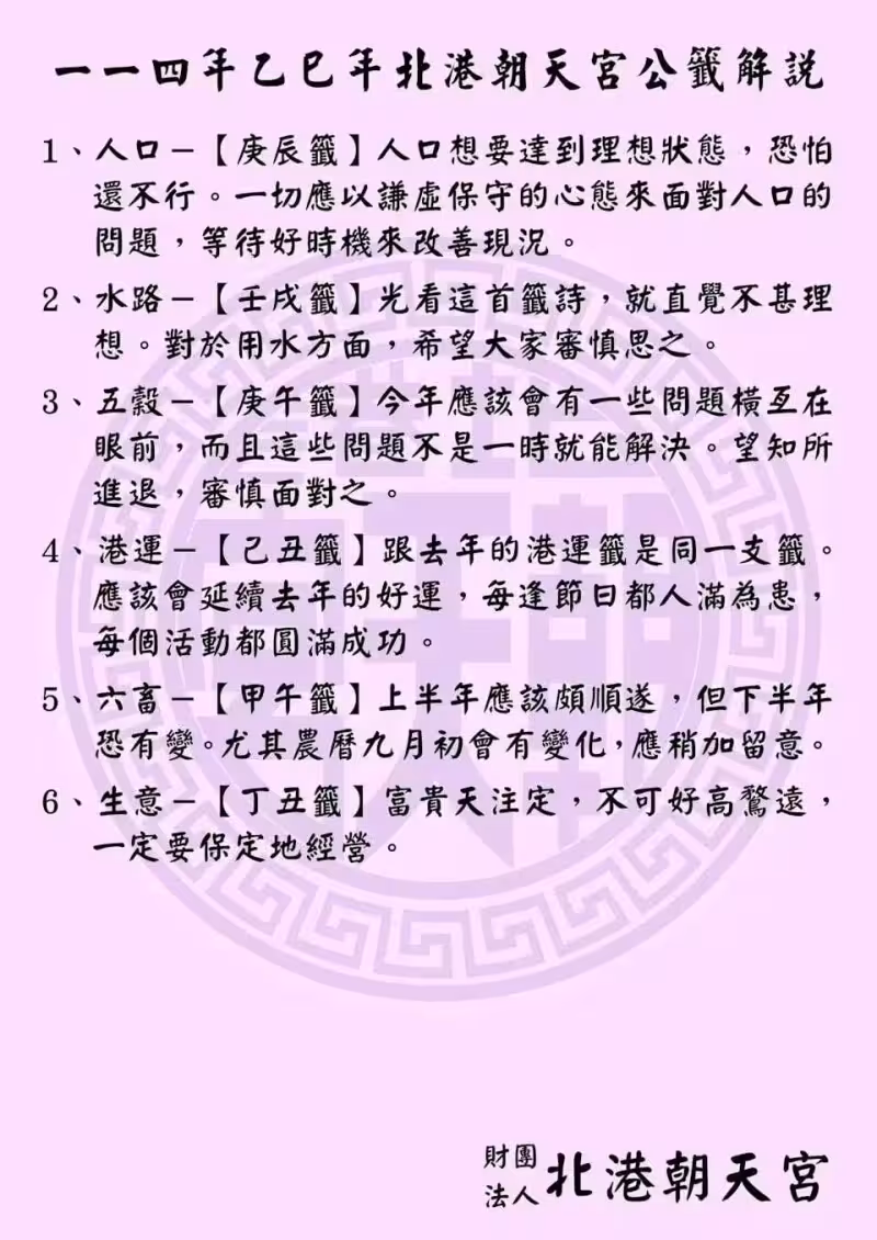 有網友翻出當時北港朝天宮的公簽,紛紛留言表示「六畜簽應驗了」、「六畜簽、神准、應驗非洲豬瘟」、「北港媽靈驗,現今遇到非洲豬瘟,印證六畜會有問題」、「保佑萬民合境平安」、「這詩簽太精準了」。