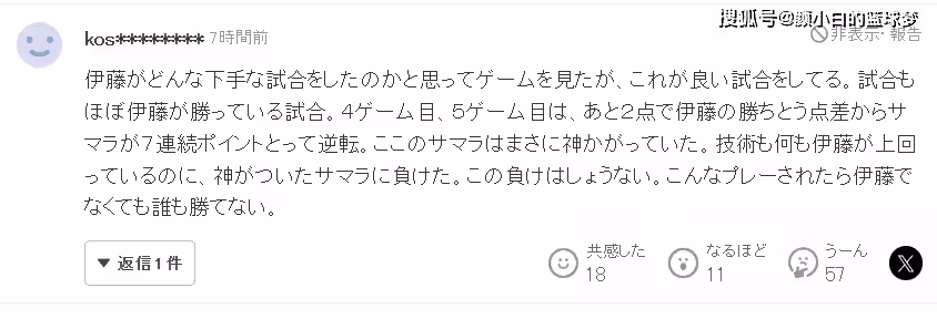 4.實際上伊藤選手這場比賽打的不錯,比賽一直都是她的節奏,只是輸在關鍵分。明明在技術、年齡上都占優,最終輸掉比賽無可奈何。