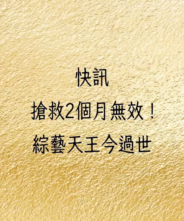 快訊/搶救2個月無效!綜藝天王今過世