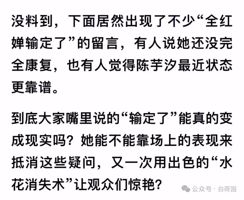 郭晶晶怎麼也沒有想到,官宣喜訊的全紅嬋,會和她走了同一條老路**