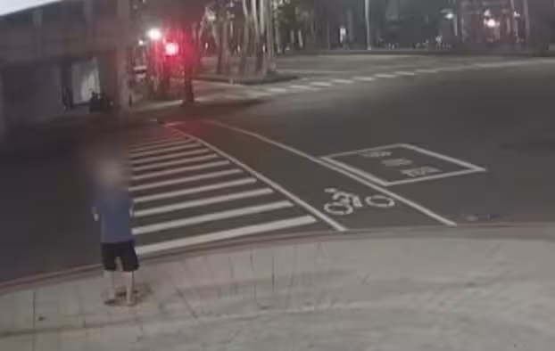 從監視器畫面可以看到,李男突然躺在斑馬線上,長達60秒,接著一輛轎車突然駛來,由於當時號誌燈已轉為綠燈,駕駛未能及時發現路上有人,直接將李男輾過。