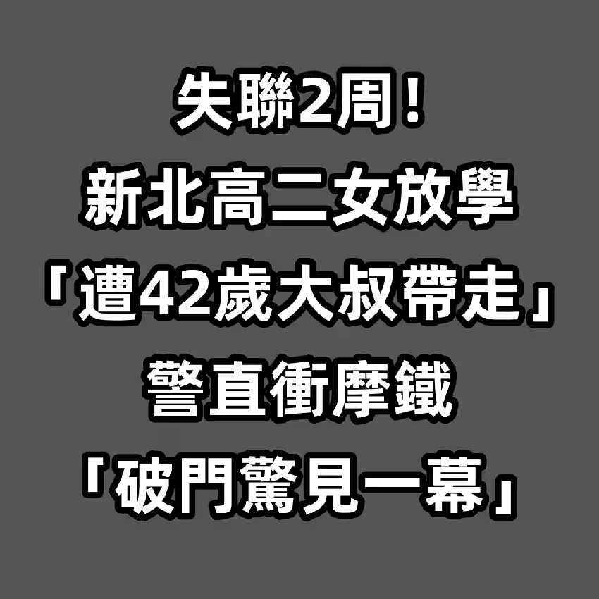 失聯2周! 新北高二女放學「遭42歲大叔帶走」 警直衝摩鐵「破門驚見一幕」