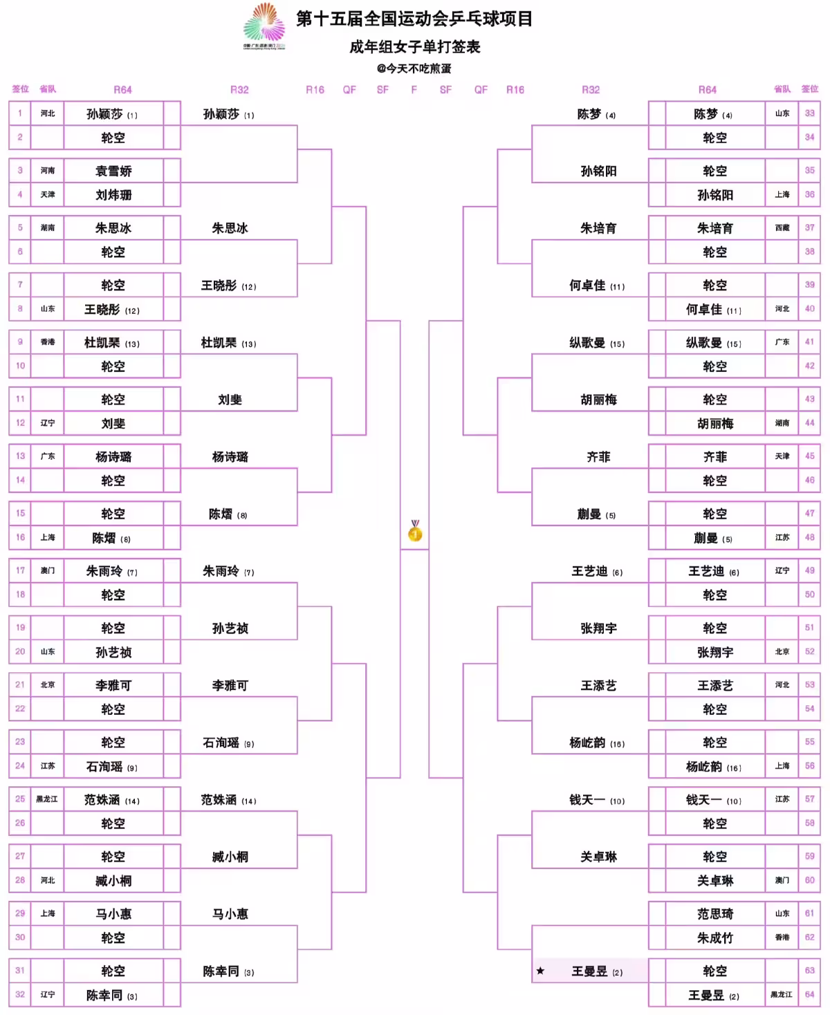 全運女單簽表解析!孫穎莎遇剋星,王曼昱戰勁敵,蒯曼挑戰陳夢