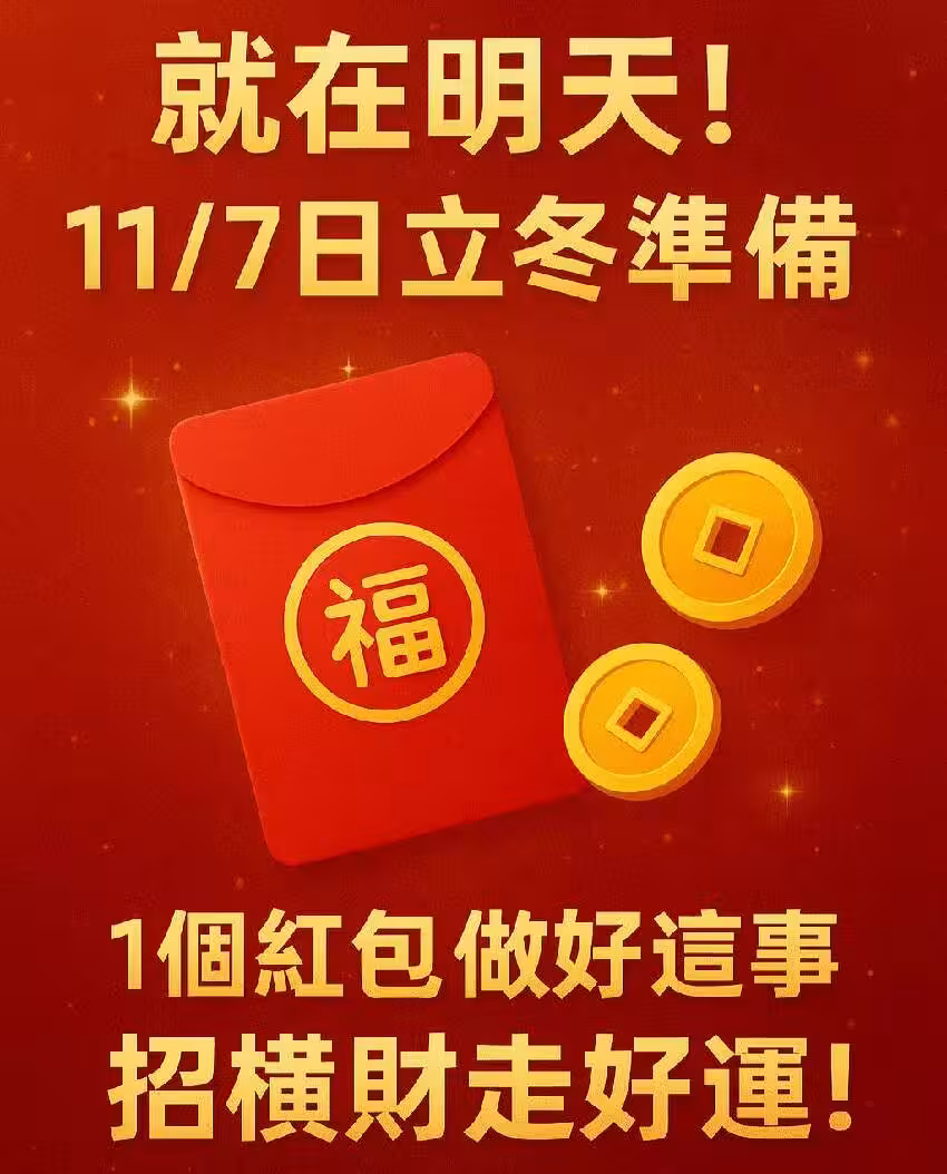 就在明天!11/7日立冬準備「1個紅包做好這事」招橫財走好運!