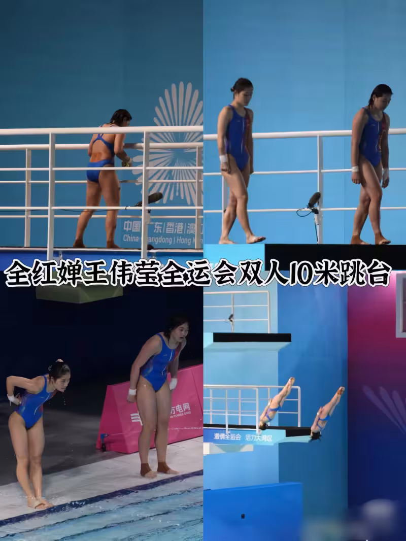 11月6日晚,全運會跳水女子雙人10米跳台決賽在廣州完成角逐,帶傷出戰的廣東隊選手全紅嬋和搭檔王偉瑩以311.76分獲第五名。