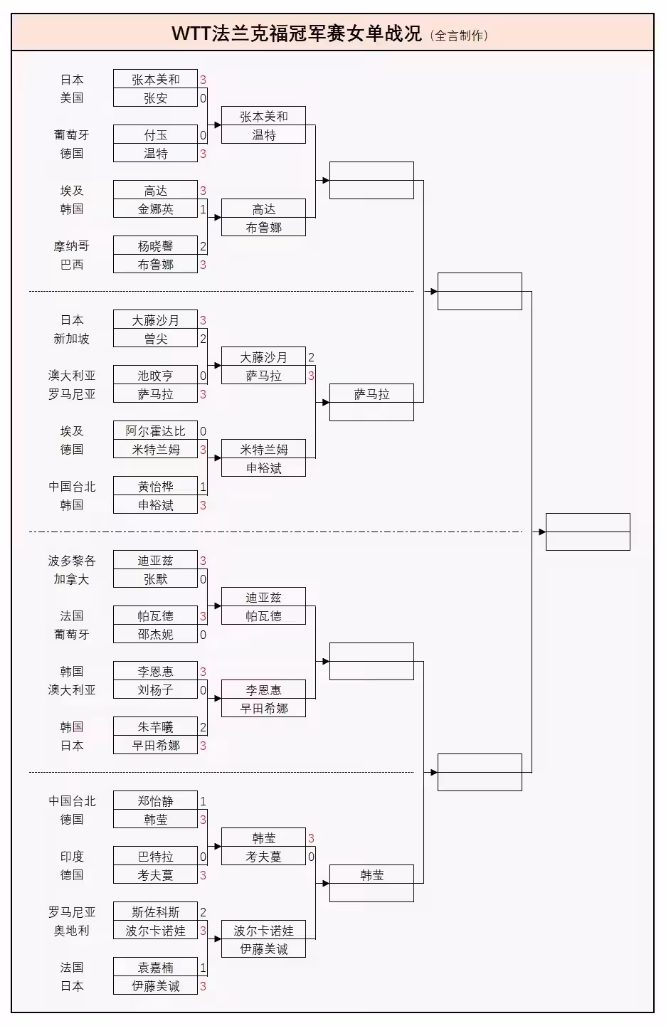 WTT冠軍賽:11月7日賽程公布!張本智和迎戰世界冠軍,誕生8強完整名單