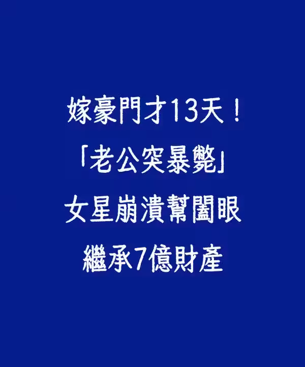 嫁豪門才13天!「老公突暴斃」女星崩潰幫闔眼 繼承7億財產!