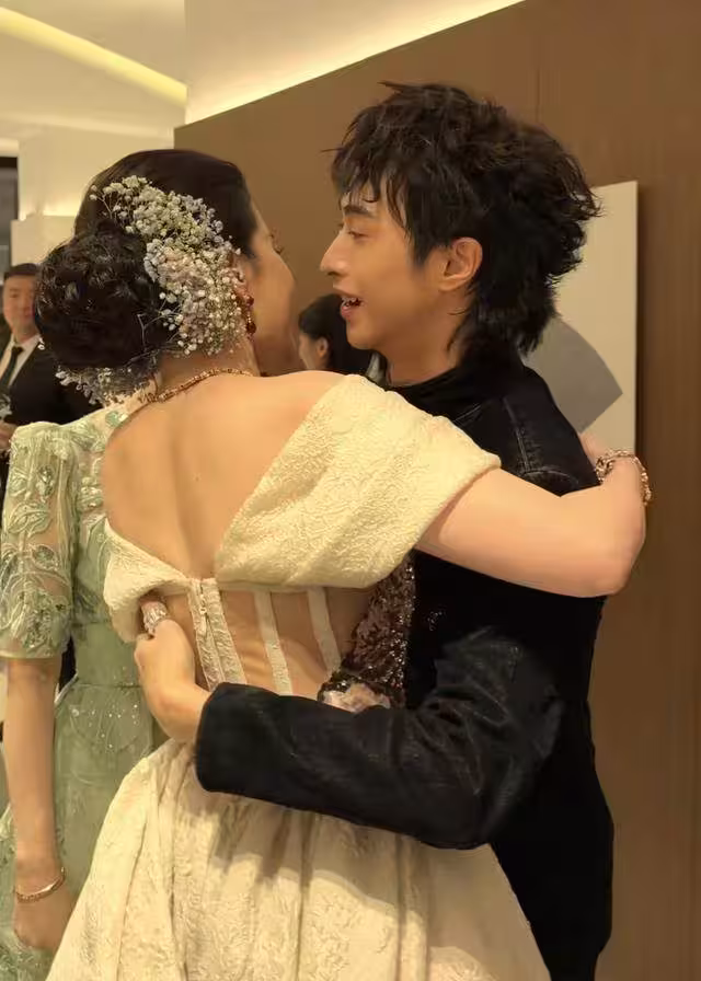 雙方擁抱的時候,恩利還特別小心,沒有踩到劉亦菲的裙擺。
