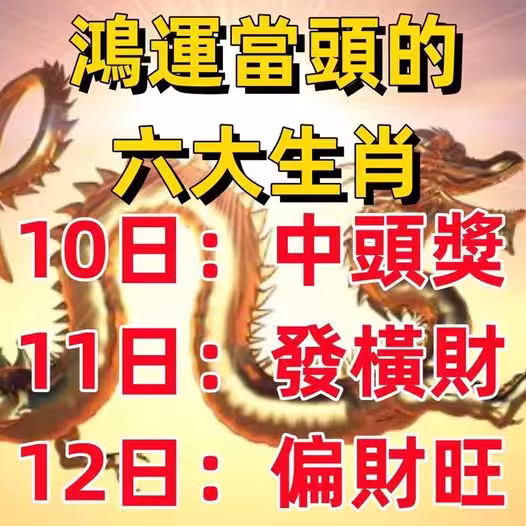 鴻運當頭的六大生肖:11月10日中頭獎 ,11日發橫財 ,12日偏財旺