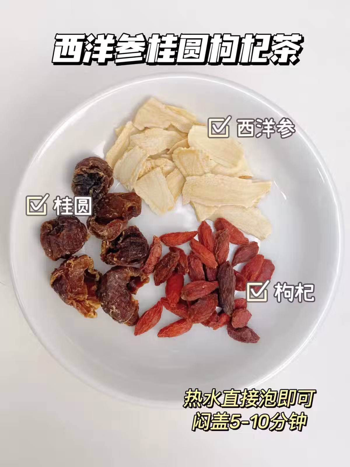 ❺西洋參3g+紅棗片8片+桂圓肉5-6顆✅