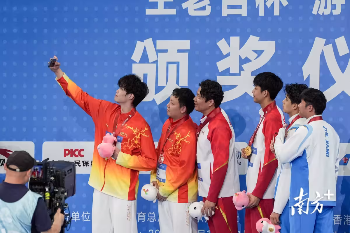 11月10日,十五運會游泳首枚金牌誕生。山東隊張展碩以3分42秒82的成績斬獲男子400米自由式金牌,這一成績超過了世界青年紀錄和全國青年紀錄。湖北隊徐海博和浙江隊費立緯位列二、三名。