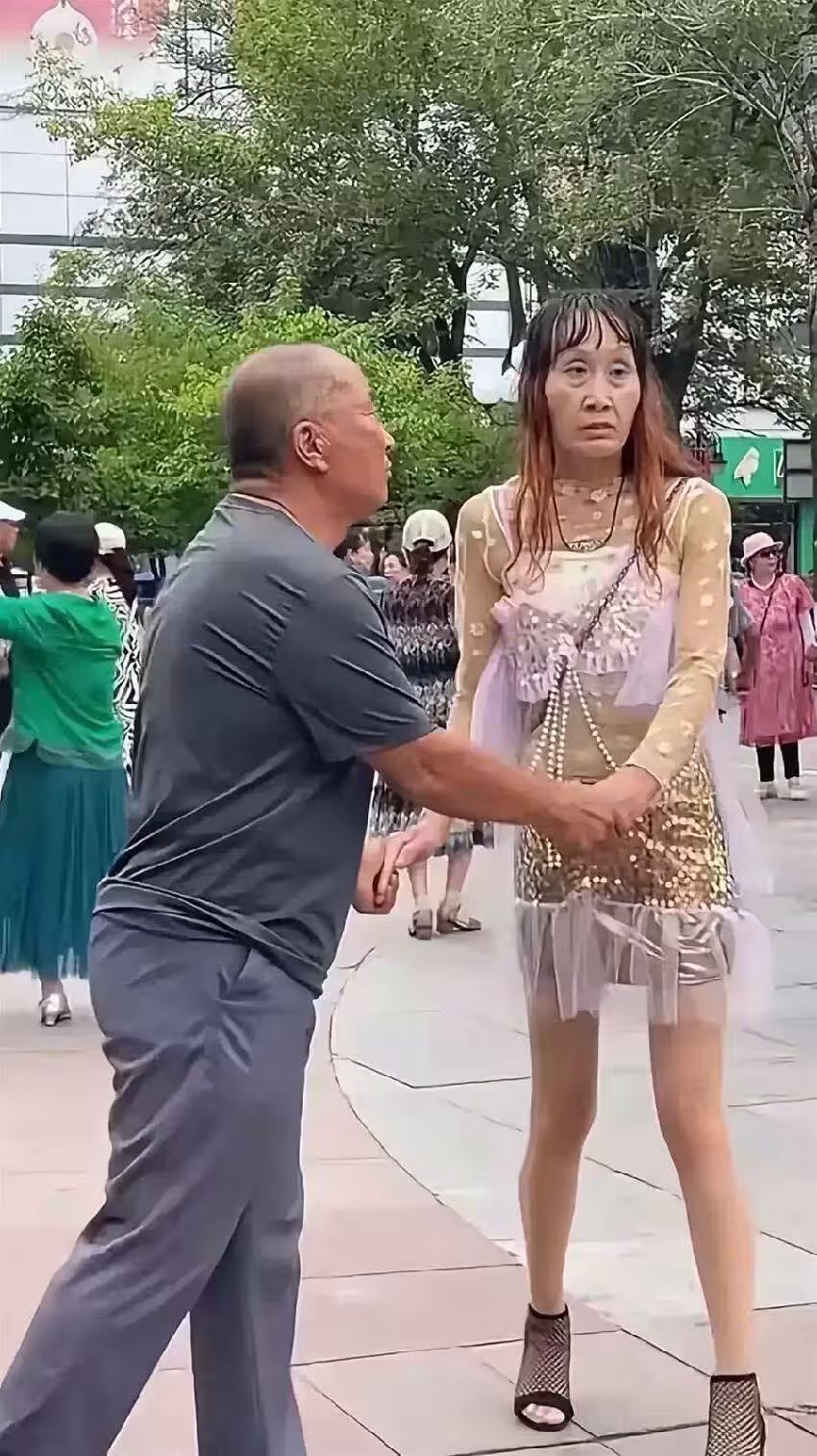 大爺和「靚女」廣場跳舞引注目!飄逸秀髪逆天長腿卻「毀在一個回眸」,網驚:背多分,秒變正面「兇手」!